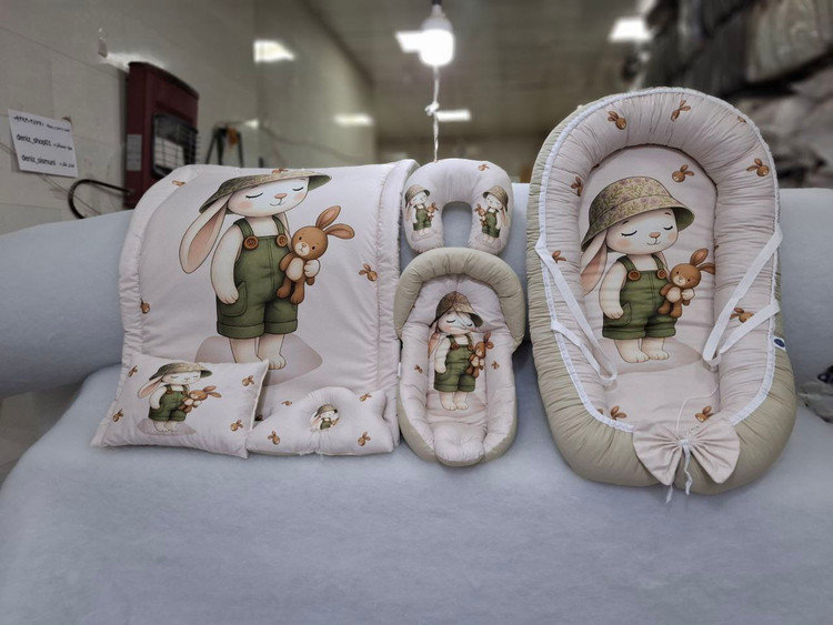 پارچهها لطیف و مناسب پوست حساس نوزاد هستن و طراحی یکدستِ تشک، لبهگیر، بالش و آغوشی باعث میشه هم از نظر زیبایی و هم کاربردی بودن، کامل باشه.
